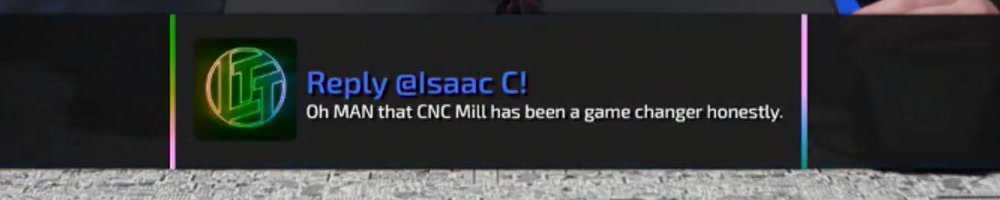 Oh MAN that CNC Mill has been a game changer honestly. | Timestamp |  |