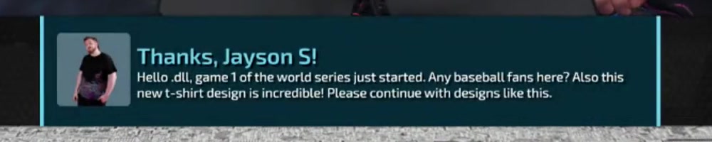 Hello.dll, game 1 of the world series just started. Any baseball fans here? Also this