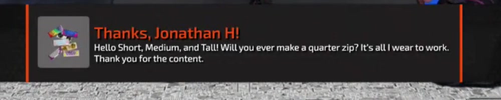 Hello Short, Medium, and Tall! Will you ever make a quarter zip? It's all I wear to work.