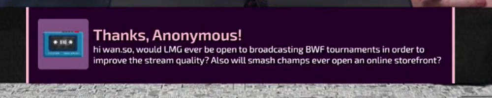 improve the stream quality? Also will smash champs ever open an online storefront? | Timestamp |  |