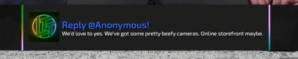 We'd love to yes. We've got some pretty beefy cameras. Online storefront maybe. | Timestamp |  |