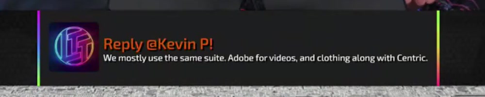 We mostly use the same suite. Adobe for videos, and clothing along with Centric. | Timestamp |  |
