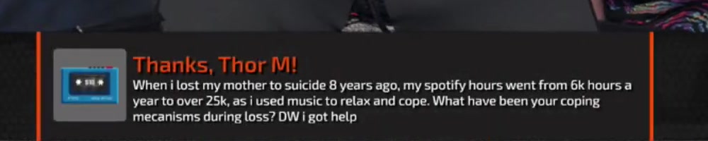 When i lost my mother to suicide 8 years ago, my spotify hours went from 6k hours a