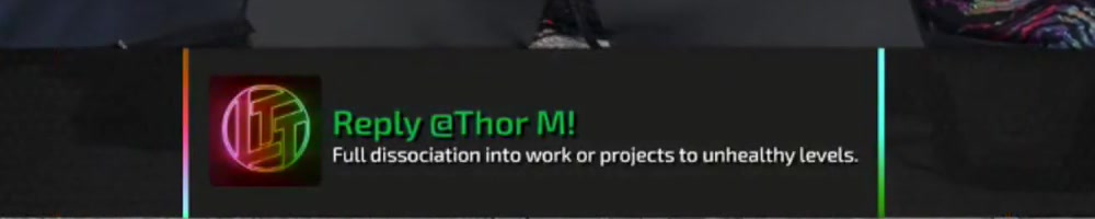 Full dissociation into work or projects to unhealthy levels. | Timestamp |  |