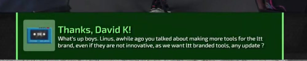What's up boys. Linus, awhile ago you talked about making more tools for the ltt