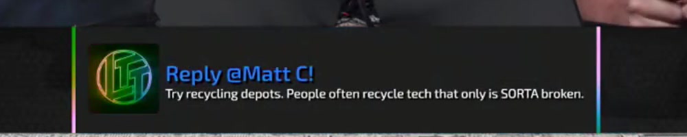 Try recycling depots. People often recycle tech that only is SORTA broken. | Timestamp |  |