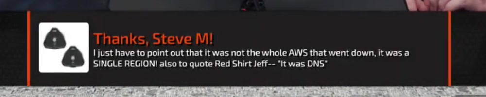 SINGLE REGION! also to quote Red Shirt Jeff-- "It was DNS" | Timestamp |  |