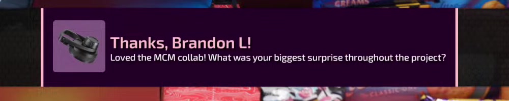 Loved the MCM collab! What was your biggest surprise throughout the project? | Timestamp |  |