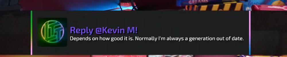 Depends on how good it is. Normally I'm always a generation out of date. | Timestamp |  |