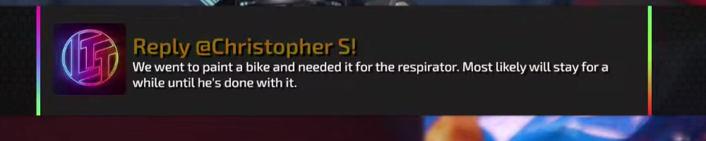 We went to paint a bike and needed it for the respirator. Most likely will stay for a
