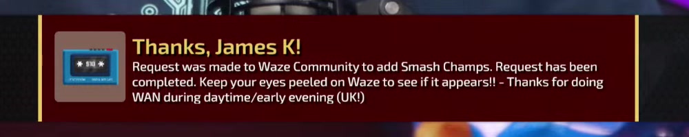 completed. Keep your eyes peeled on Waze to see if it appears!! - Thanks for doing