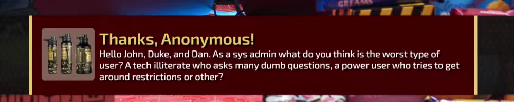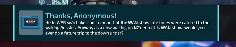Hello WAN w/o Luke, cool to hear that the WAN show late times were catered to the