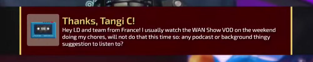 Hey LD and team from France! I usually watch the WAN Show VOD on the weekend