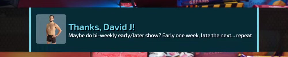 Maybe do bi-weekly early/later show? Early one week, late the next... repeat | Timestamp |  |