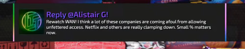 unfettered access. Netflix and others are really clamping down. Small % matters