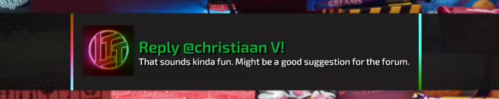 That sounds kinda fun. Might be a good suggestion for the forum. | Timestamp |  |