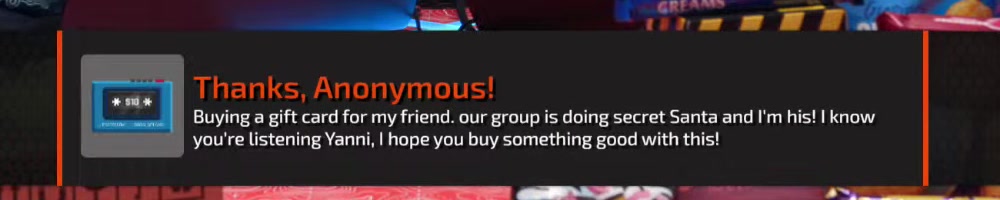 you're listening Yanni, I hope you buy something good with this! | Timestamp |  |