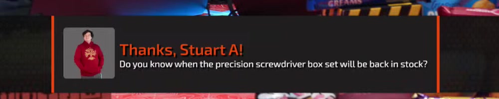 Do you know when the precision screwdriver box set will be back in stock? | Timestamp |  |