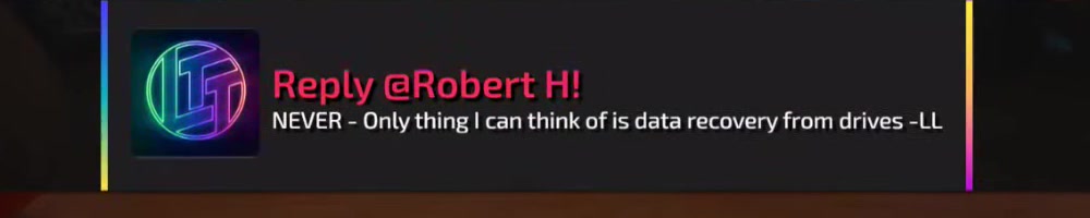 Linus has answered this before, check out our channel LMG Clips! | Timestamp |  |