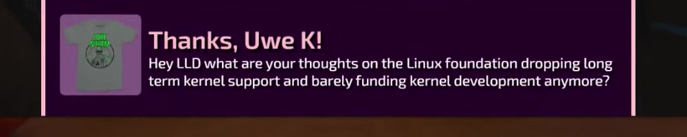 term kernel support and barely funding kernel development anymore? | Timestamp |  |