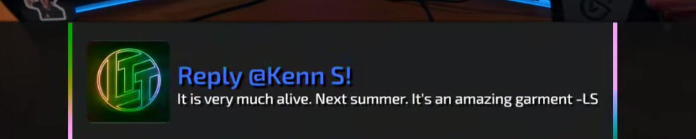 It is very much alive. Next summer. It's an amazing garment -LS | Timestamp |  |