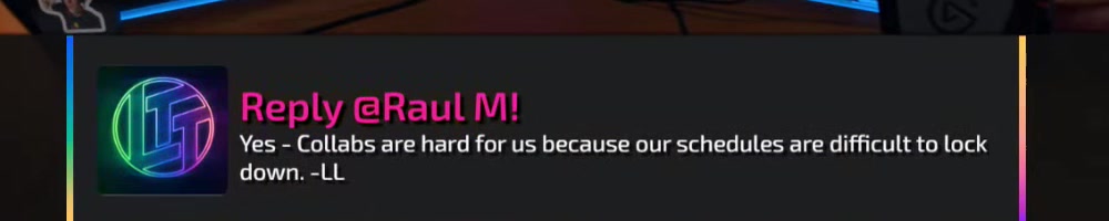 Yes Collabs are hard for us because our schedules are difficult to lock