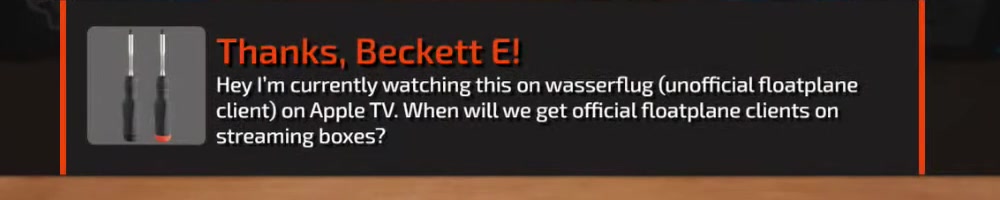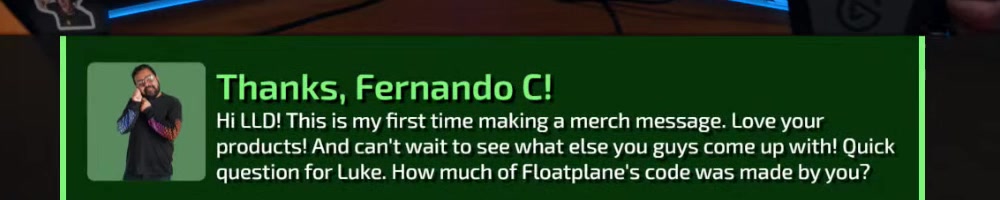 question for Luke. How much of Floatplane's code was made by you? | Timestamp |  |