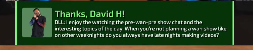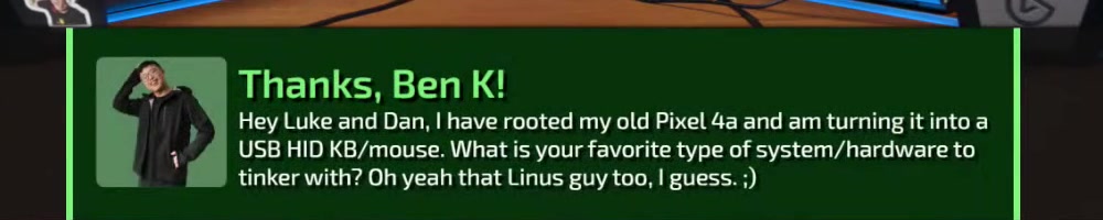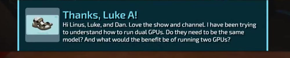 Hi Linus, Luke, and Dan. Love the show and channel. I have been trying