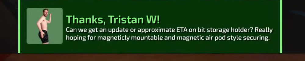hoping for magneticly mountable and magnetic air pod style securing. | Timestamp |  |