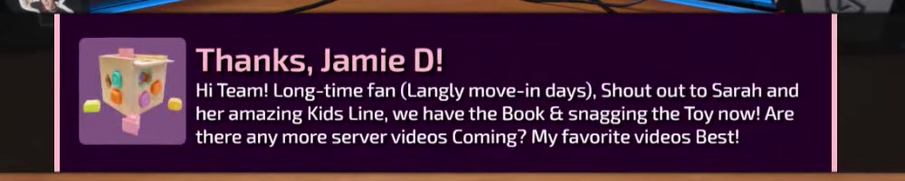 Hi Team! Long-time fan (Langly move-in days), Shout out to Sarah and