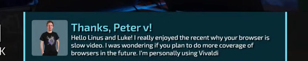 Hello Linus and Luke! I really enjoyed the recent why your browser is