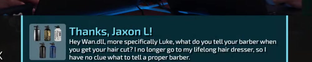 Hey Wan.dll, more specifically Luke, what do you tell your barber when