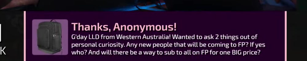 who? And will there be a way to sub to all on FP for one BIG price? | Timestamp |  |