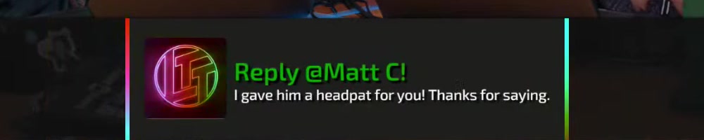I gave him a headpat for you! Thanks for saying. | Timestamp |  |