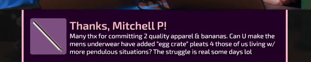 Many thx for committing 2 quality apparel & bananas. Can U make the
