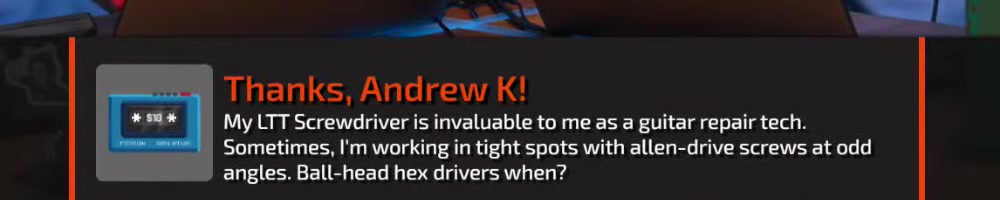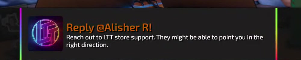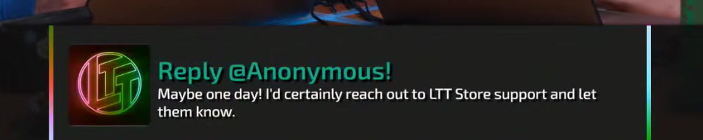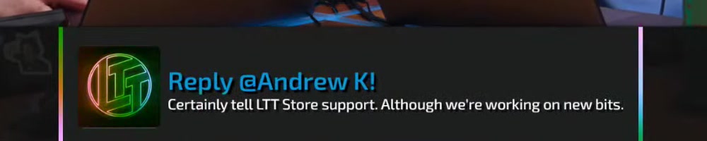 Certainly tell LTT Store support. Although we're working on new bits. | Timestamp |  |