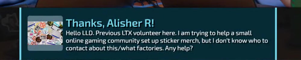 Hello LLD, are there any plans for an event LTX or otherwise that