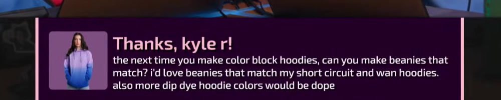 also more dip dye hoodie colors would be dope | Timestamp |  |