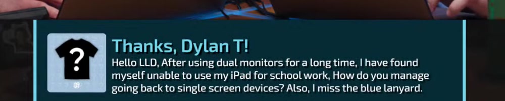 going back to single screen devices? Also, I miss the blue lanyard. | Timestamp |  |