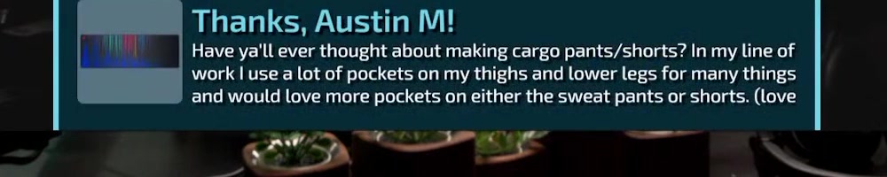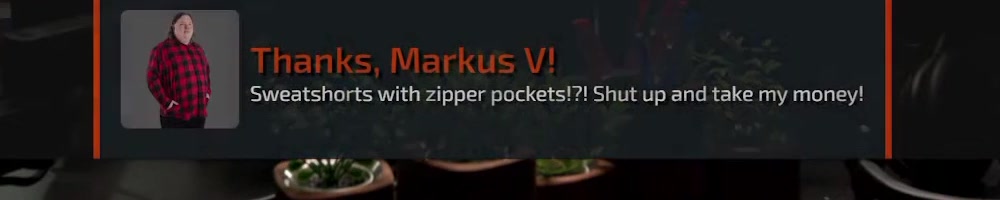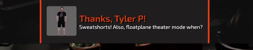 ’ ‘ Sweatshorts! Also, floatplane theater mode when?