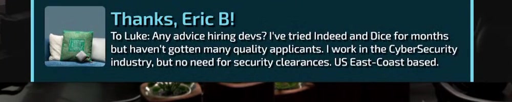 To Luke: Any advice hiring devs? I've tried Indeed and Dice for months