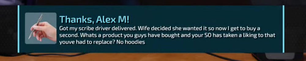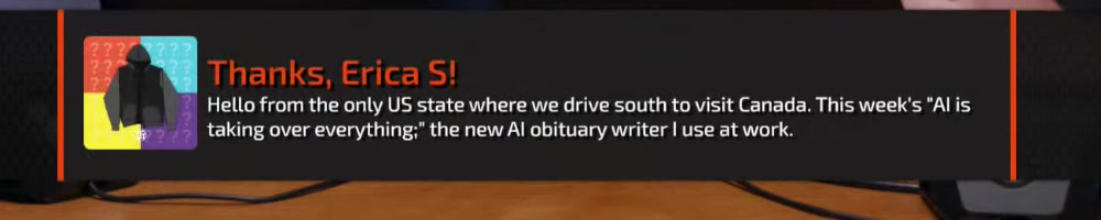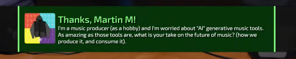 Your message was curated! We will answer it later in the show. | Timestamp |  |
