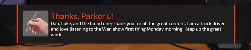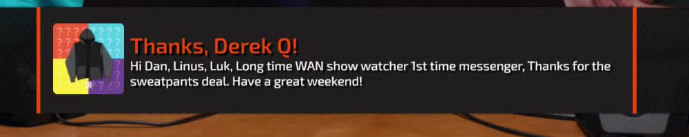 Hi Linus, I didn't realize the WAN show was still on past midnight so this is a fun