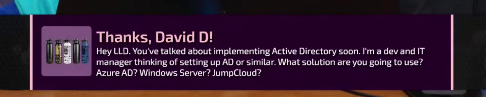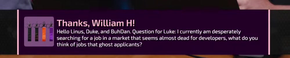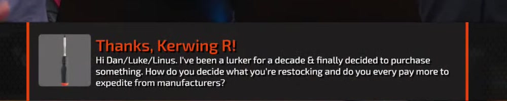 Hello Linus, Duke, and BuhDan. Question for Luke: I currently am desperately