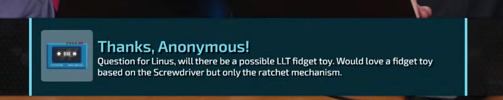 Question for Linus, will there be a possible LLT fidget toy. Would love a fidget toy