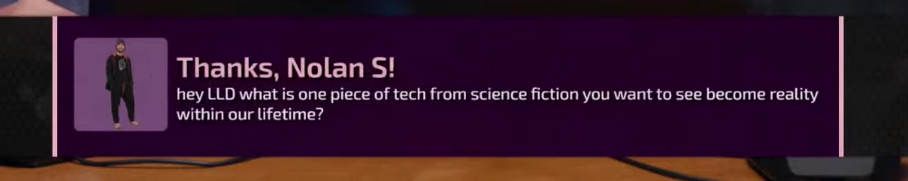 hey LLD what is one piece of tech from science fiction you want to see become reality