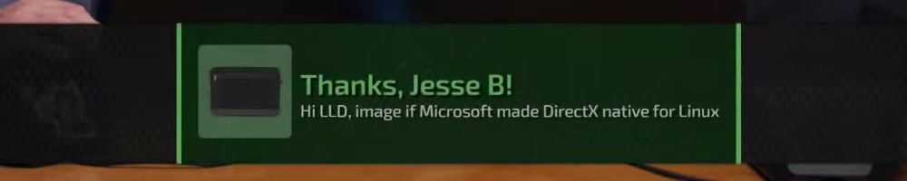 Hi LLD, image if Microsoft made DirectX native for Linux | Timestamp |  |