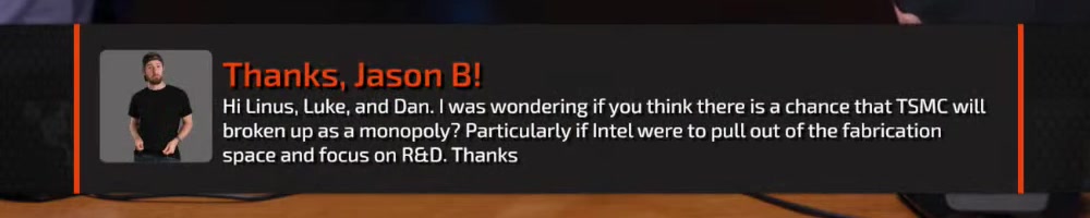 Hi Linus, Luke, and Dan. I was wondering if you think there is a chance that TSMC will
