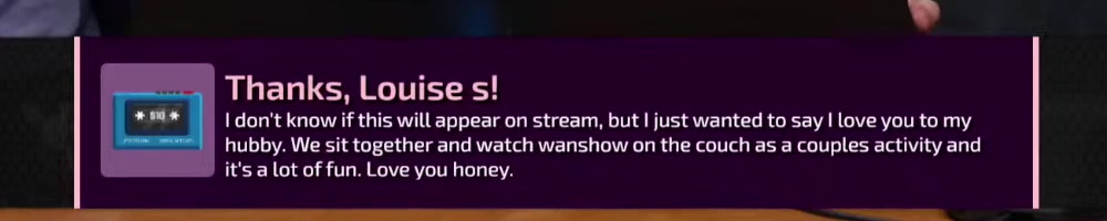 I don't know if this will appear on stream, but I just wanted to say I love you to my