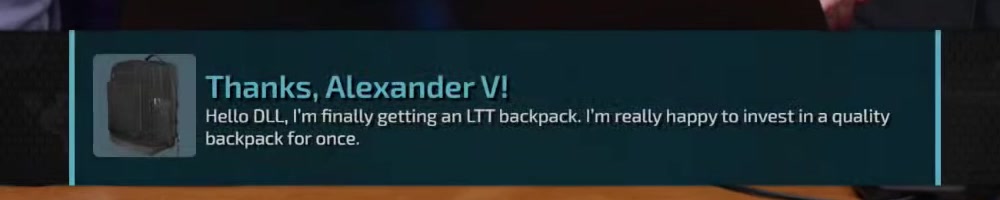Hello DLL, I'm finally getting an LTT backpack. I'm really happy to invest in a quality